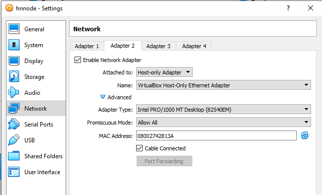 Click Adapter 2 and ensure Check Enable Network Adapter, select Host-Only Adapter from Attached