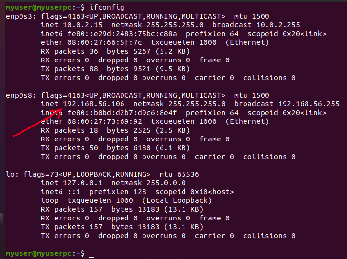And output is shown in the following picture and reddish arrow sign indicates IP address.