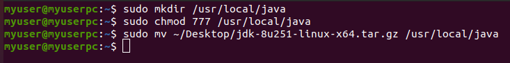 $ sudo mv ~/Desktop/jdk-8u251-linux-x64.tar.gz /usr/local/java