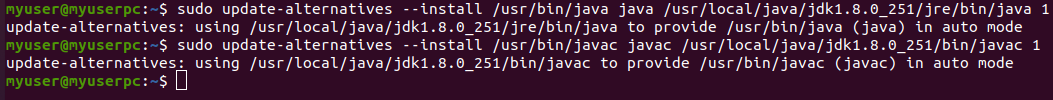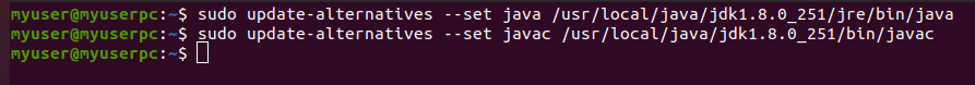 sudo update-alternatives --set javac /usr/local/java/jdk1.8.0_251/bin/javac