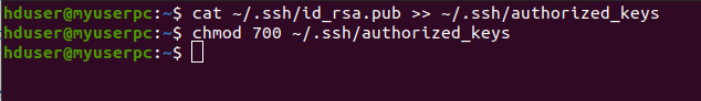 $ cat ~/.ssh/id_rsa.pub >> ~/.ssh/authorized_keys