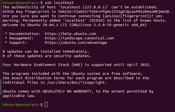 $ ssh localhost