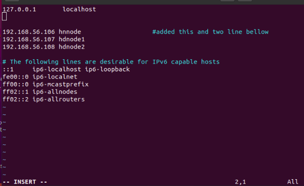 hduser@hnnode$ sudo vim /usr/local/hadoop/etc/hadoop/workers