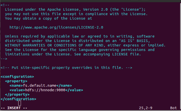 $ sudo vim /usr/local/hadoop/etc/hadoop/core-site.xml
