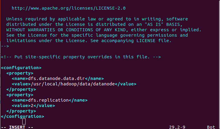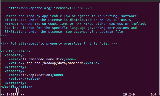 $ sudo vim /usr/local/hadoop/etc/hadoop/hdfs-site.xml