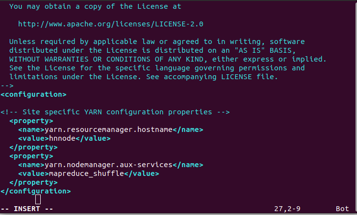 $ sudo vim /usr/local/hadoop/etc/hadoop/yarn-site.xml