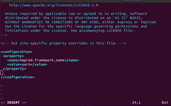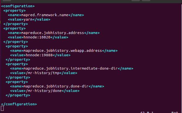 $ sudo vim /usr/local/hadoop/etc/hadoop/mapred-site.xml