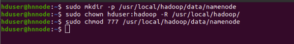 $ sudo mkdir -p /usr/local/hadoop/data/namenode