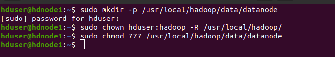 sudo mkdir -p /usr/local/hadoop/data/datanode