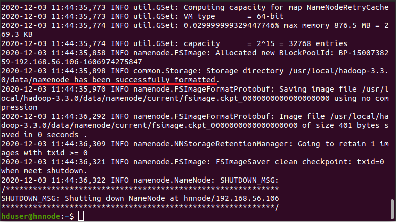 $ hdfs namenode -format
