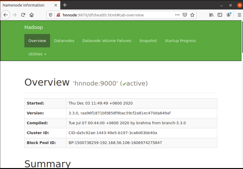 Web Interface: http://hnnode:9870