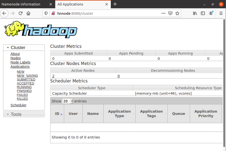 Web Interface : http://hnnode:8088